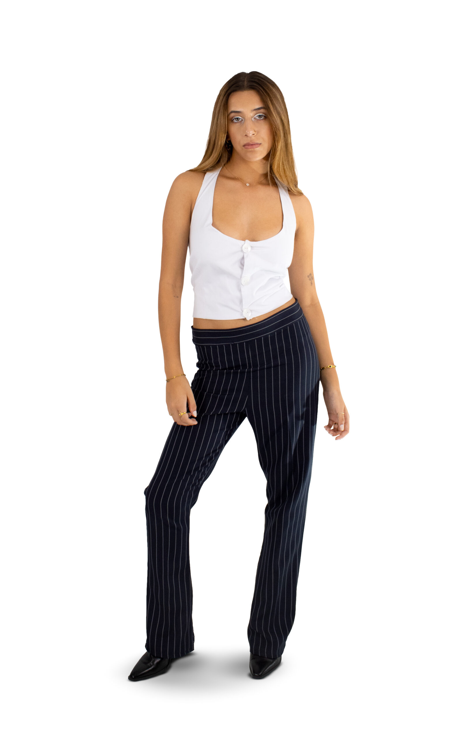 Chaleco confeccionado con escote redondo y espalda profunda que aporta un aire sofisticado y contemporáneo. Presenta botones frontales y detalle de martingala en la parte trasera, que realza la estructura y añade carácter al diseño. Su corte definido y acabado limpio aseguran una silueta pulida, perfecta para llevar en looks formales o como pieza statement en estilismos urbanos.