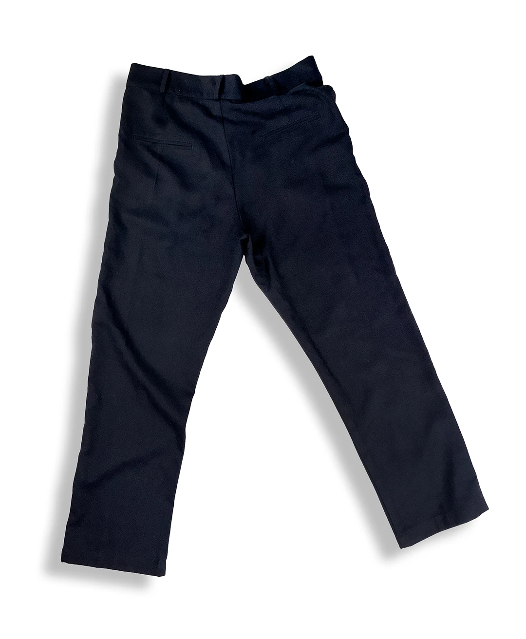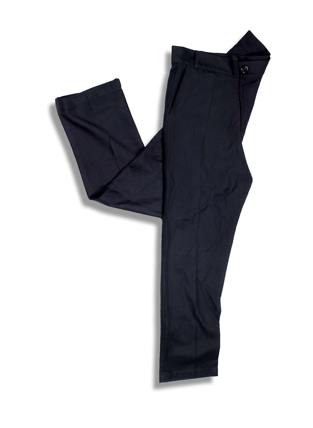 Pantalón recto confeccionado en tejido negro de alta calidad con corte definido y acabado limpio. Presenta bolsas delanteras y traseras, pinzas que aportan estructura y un botón marmoleado que añade un detalle elegante. Versátil y contemporáneo, este pantalón es ideal para looks formales o combinaciones urbanas sofisticadas, convirtiéndose en un básico imprescindible para tu guardarropa.